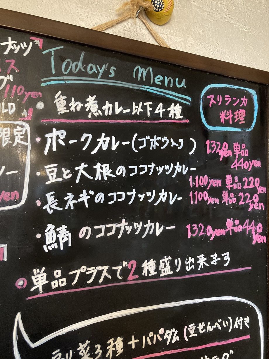 ・豆と大根のココナッツカレー 1,100円 単品220円